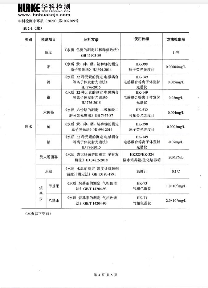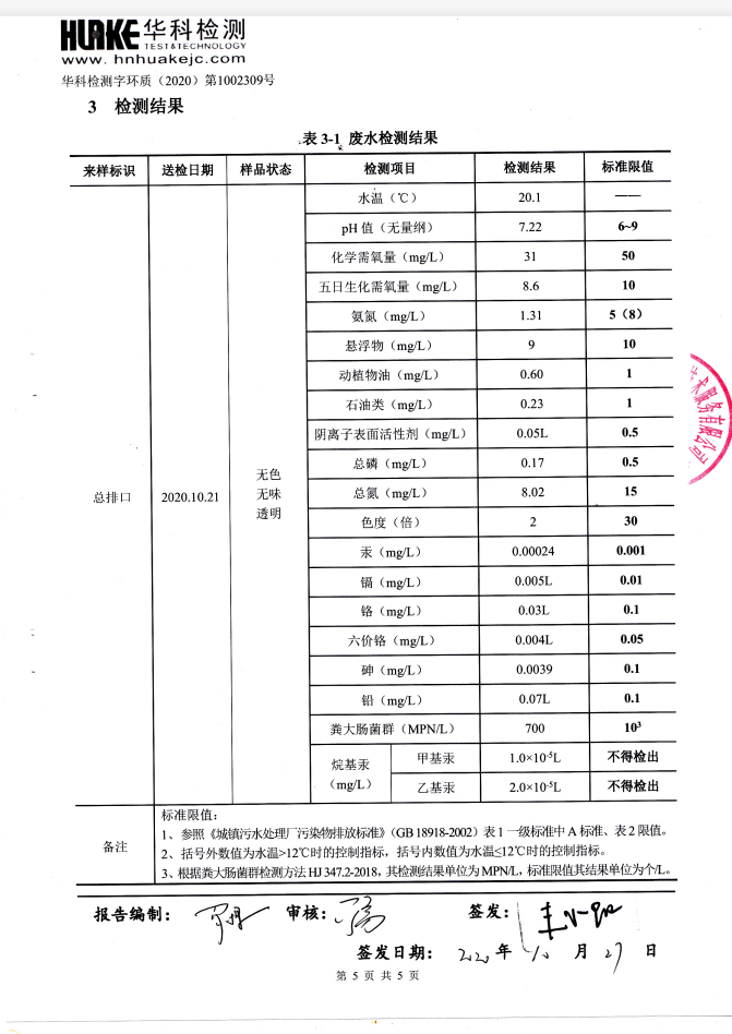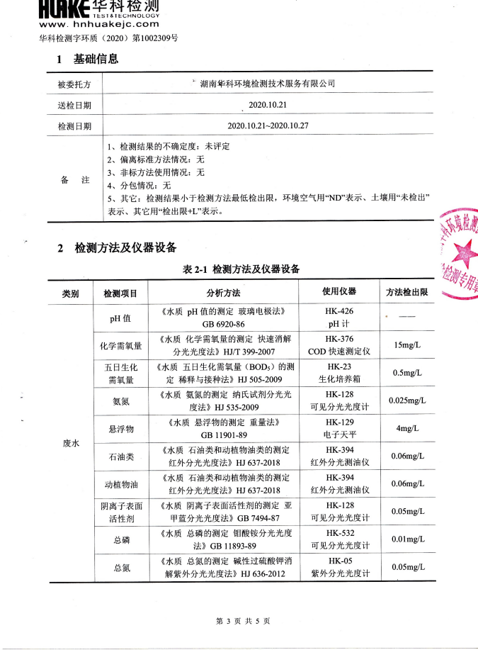 湖南怀德检测技术有限公司 2025年10月 出水水质检测报告
